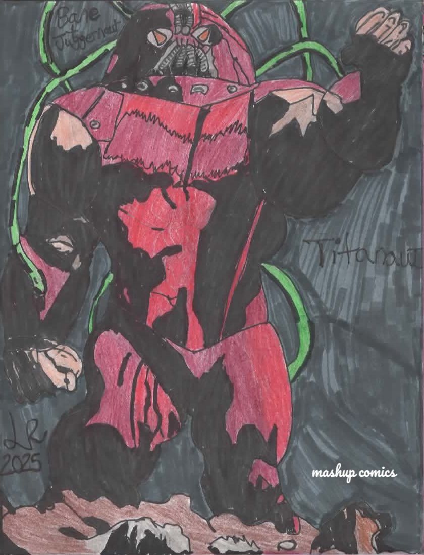 Titanaut is a comic drawn mashup of Bane from DC Comics and Juggernaut from Marvel Comics. Titanaut escapes prison to find the toughest warrior, the great Moon-Bat and in the process finds his brother Charles Pennyworth training the next generation of heroes!!! Moon-Bat is a mashup of Moon Knight from Marvel Comics and Batman from DC Comics. All hand drawn prints by Luke Roberts! All 8 x 10 Prints, Canvas Prints & Magnet Prints.